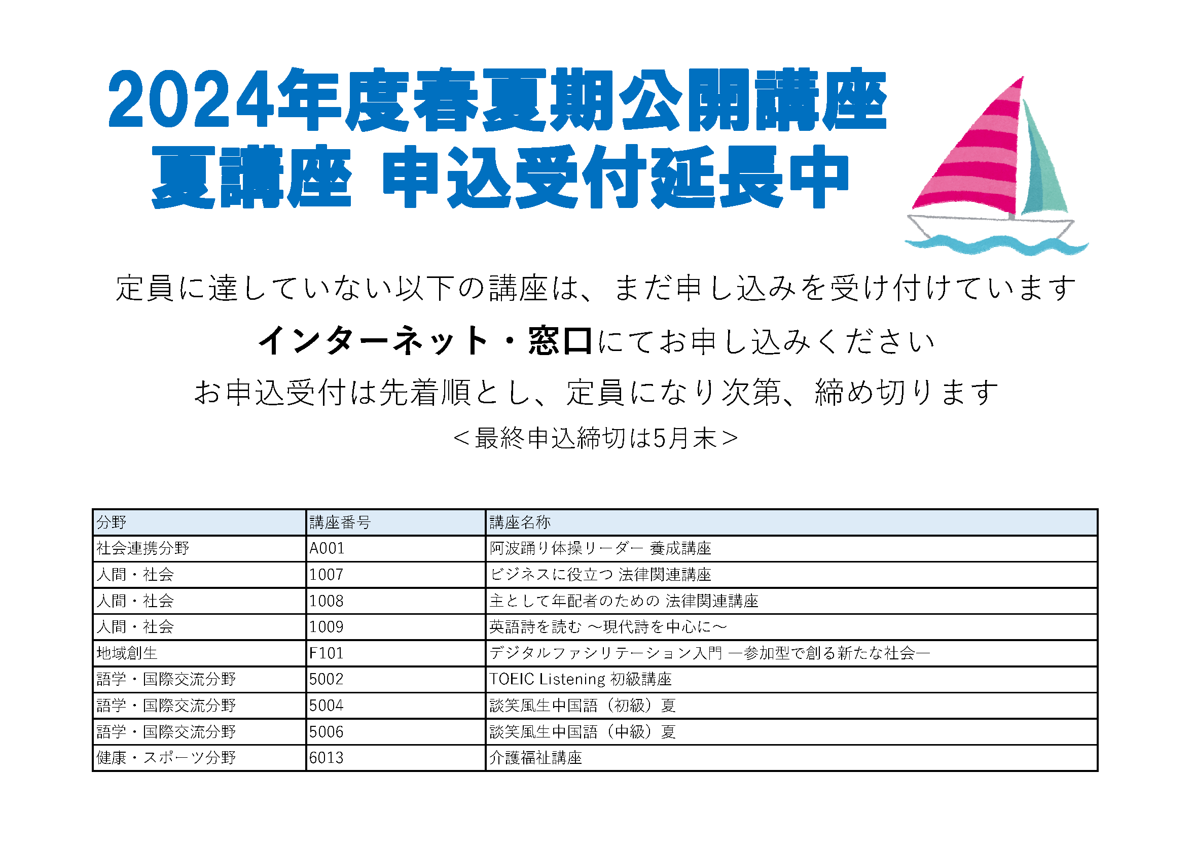 【2024春夏期】夏講座申込受付延長中 → 終了しました